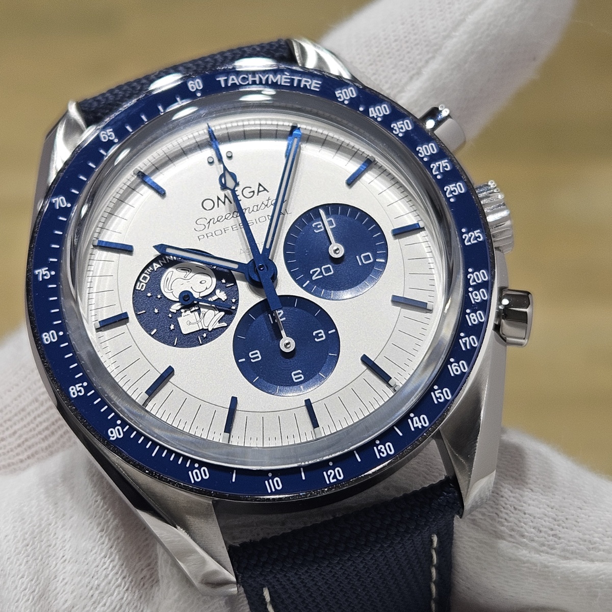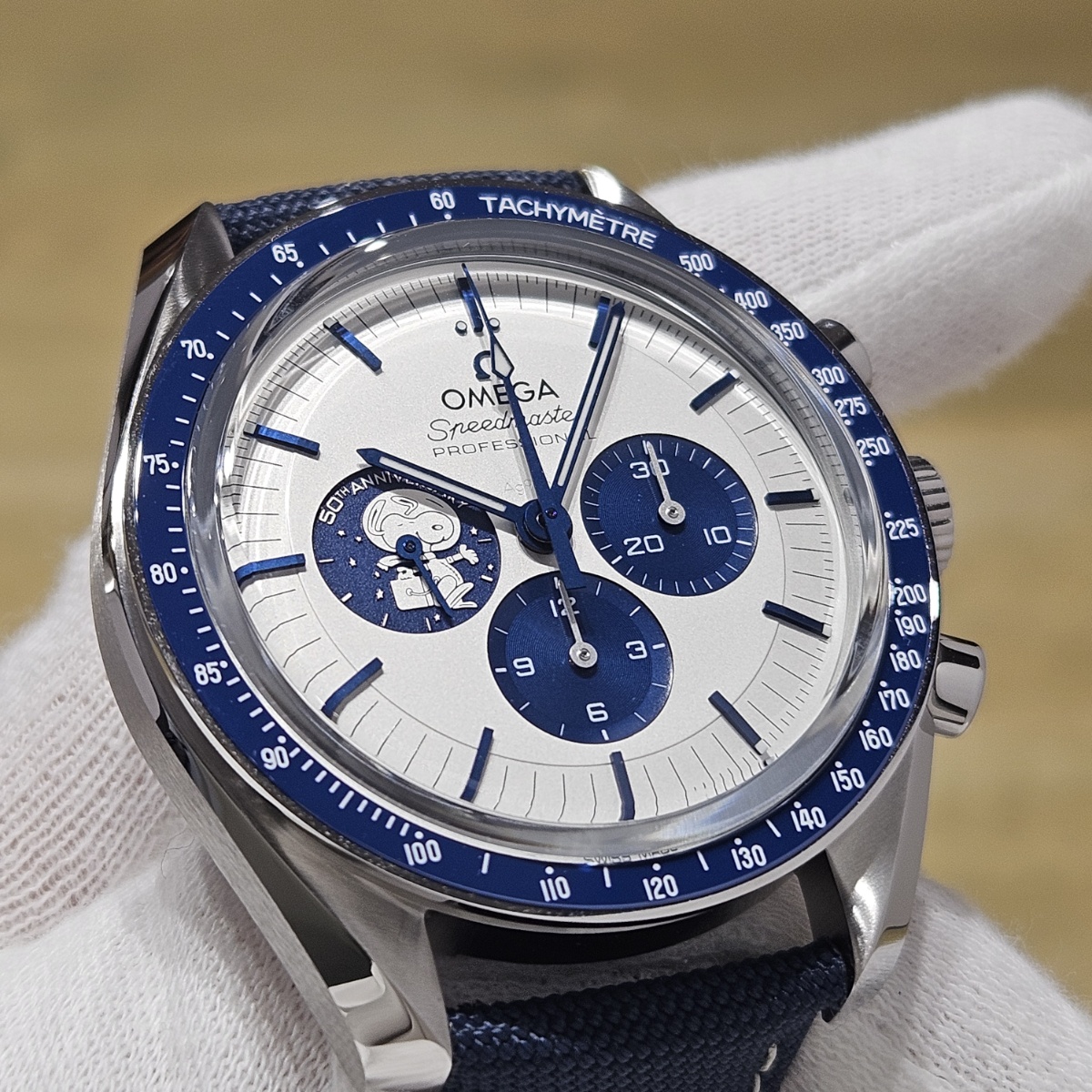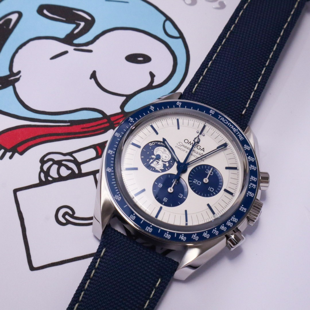 | コメント | 2025年11月国内正規品。オメガ スヌーピーアワード50周年記念モデルの未使用品の入荷です。こちらの個体は純正ラバーベルトとラバー用純正Dバックルがオプションで付属するお買い得な個体となります。純正ベルトも枕に巻き付けず真っすぐな状態で保管しておりますし、傷が入らない様に全てフィルムにて防護して保管しております。クロノグラフを稼働させると背面でスヌーピーが動く仕掛けも可愛い部分です。完全な未使用品をお探しの方は是非お問い合わせ下さい。 |