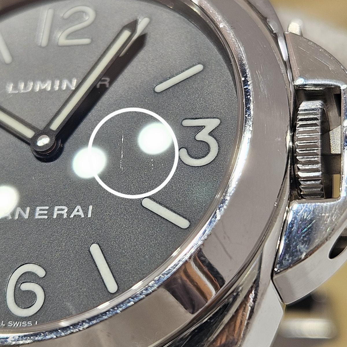 コメント | 2004年、範囲外生産品 Out of Rangeのルミノールベースの入荷です。ガラスに微細スレ、ケースに多数の傷とスレがありますがノンポリッシュを維持する為にこのままお使い頂ける方向けに販売致します。2001年に生産を終了したパネライ原初の番号PAM00002を2004年に100本限定で再生産したOOR管理のPAM00002となります。市場にもほとんど出回らなくなったPAM00002のOORとなりますのでお探しの方は是非お問い合わせ下さい。 |