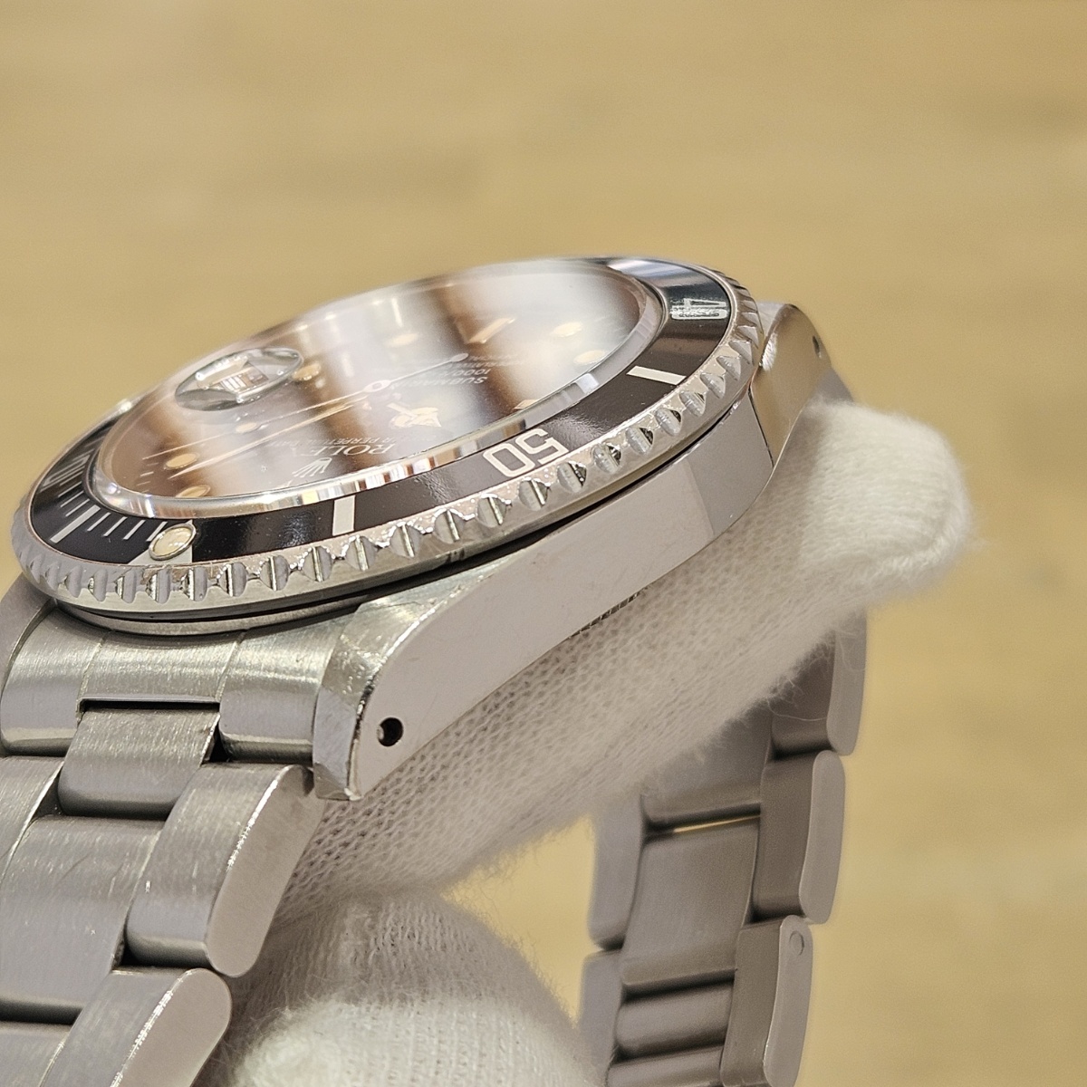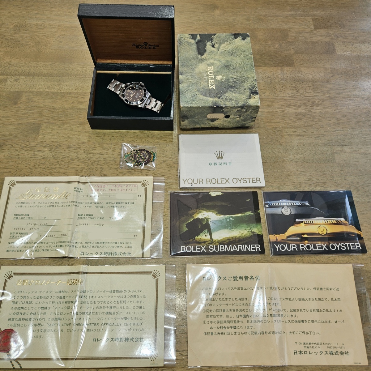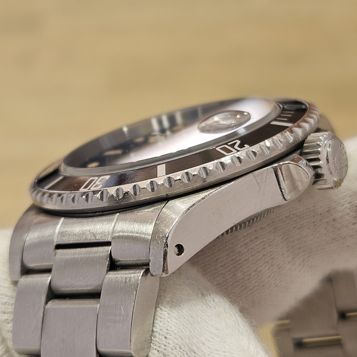 コメント | 1986年製造、1987年2月印。クラスプコードK 1986年。文字盤が綺麗な黄色に変色している168000トリプルゼロサブマリーナの入荷です。16800のケース改良版として3年ほど販売されていた168000となります。風防のフチと10時位置に微細傷はございますが、針、文字盤、ルミナスポイントは全てトリチウムとなっており多少の劣化は見られるものの素晴らしい雰囲気となっております。仕上げはしておりませんので全体的に小傷はございますがケースラグも生きておりましてフルコマかつオリジナルの溝無しバックルとなっております。付属品もリファレンスシールが付いており現在も有効なオーバーホール半額ギャランティが付属しております。1986年、1987年の誕生年ウォッチをお探しの方は是非お問い合わせ下さい。 |