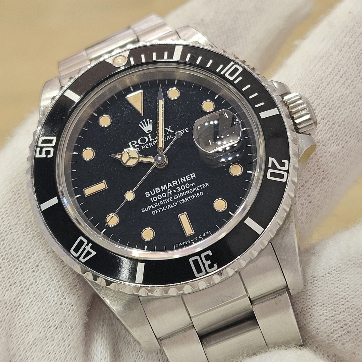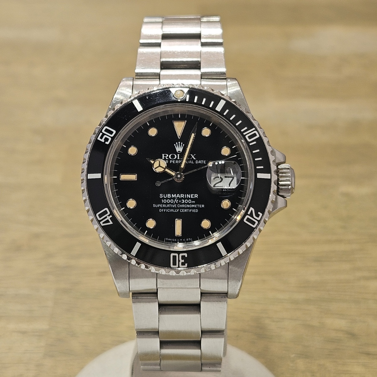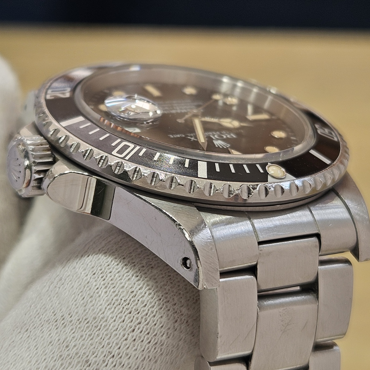 コメント | 1986年製造、1987年2月印。クラスプコードK 1986年。文字盤が綺麗な黄色に変色している168000トリプルゼロサブマリーナの入荷です。16800のケース改良版として3年ほど販売されていた168000となります。風防のフチと10時位置に微細傷はございますが、針、文字盤、ルミナスポイントは全てトリチウムとなっており多少の劣化は見られるものの素晴らしい雰囲気となっております。仕上げはしておりませんので全体的に小傷はございますがケースラグも生きておりましてフルコマかつオリジナルの溝無しバックルとなっております。付属品もリファレンスシールが付いており現在も有効なオーバーホール半額ギャランティが付属しております。1986年、1987年の誕生年ウォッチをお探しの方は是非お問い合わせ下さい。 |