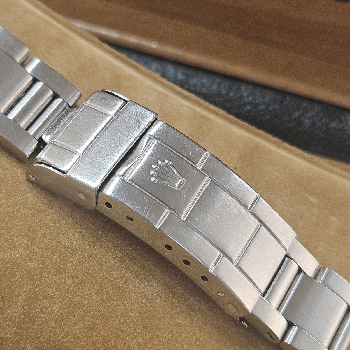 | コメント | 1985年製造、1986年4月印。クラスプコードJ 1985年。裏蓋シールの残った極上コンディションの16800の入荷です。オールトリチウム、オリジナル風防、フルコマ、溝無クラスプカバーのオリジナルバックルそして付属完備の1本です。40年前とは思えない恐ろしく綺麗なラグ、ヨレの一切ない剛性の高いブレスレットが特徴です。40年も前のものなのでオフィシャルに断言は出来ませんがノンポリッシュなのでは?と私が悩むコンディションです。金属の表面に微細なスレは多数ございますが、これ以上無い綺麗な16800となりますのでお探しの方は是非お問い合わせ下さい。 |