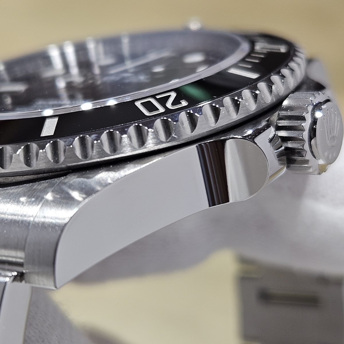 | コメント | 2025年5月。ノンポリッシュ極上コンディションの124060の入荷です。使用感もほとんど無く鏡面部分の微細スレのみの素晴らしいコンディションとなります。先代114060と比べるとラグ幅が細くなり、ブレスレット幅が1mm広くなっております。ブレスレットののサイズ微調整が工具無で簡単にできるグライドロッククラスプも健在でして日常使用できる利便性と精度、堅牢性すべてを兼ね備えた1本となっております。お探しの方は是非お問い合わせ下さい。 |