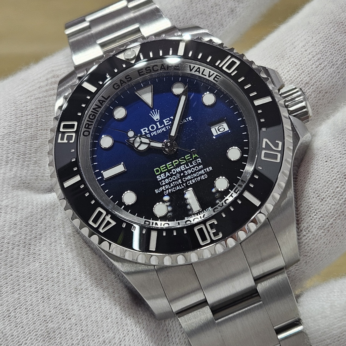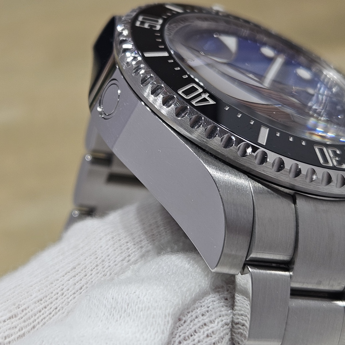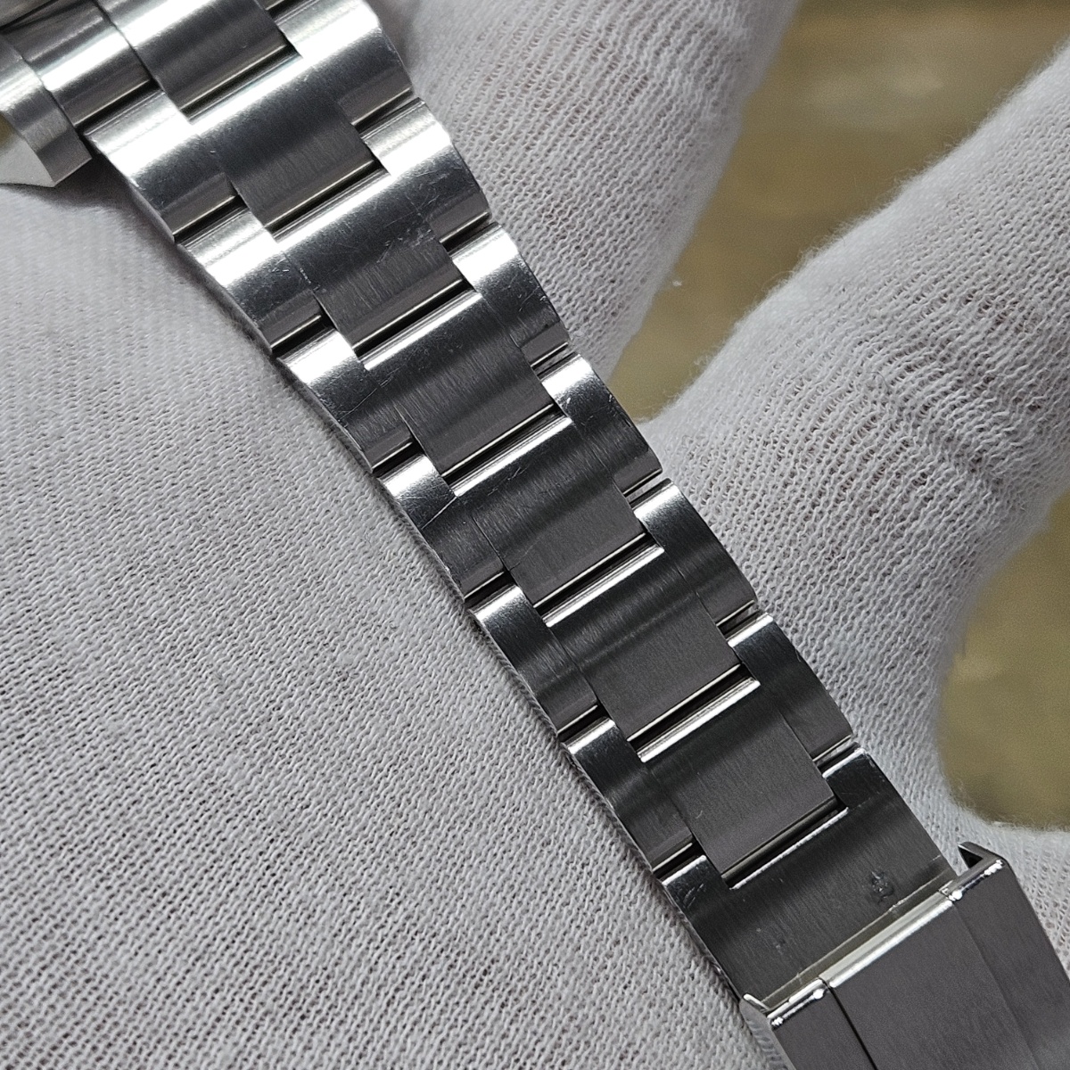 | コメント | 2018年2月国内正規品。製造最終期の初代ディープシーDブルーのノンポリッシュ品の入荷です。写真だとうまく写りませんが緑の文字のDEEPSEAの下まではっきりと青みが肉眼で確認できる後期型文字盤となります。大きな傷や打痕ができやすいディープシーですが今回の個体は全体の微細なスレとバックルのスレのみの素晴らしい状態となっております。現行品ではなくなってしまったフリップロックエクステンションシステムも健在です。年代も廃盤時の2018年の最終年代となっておりますので夏のダイバーズウォッチをお探しの方にはおすすめの1本でございます。 |