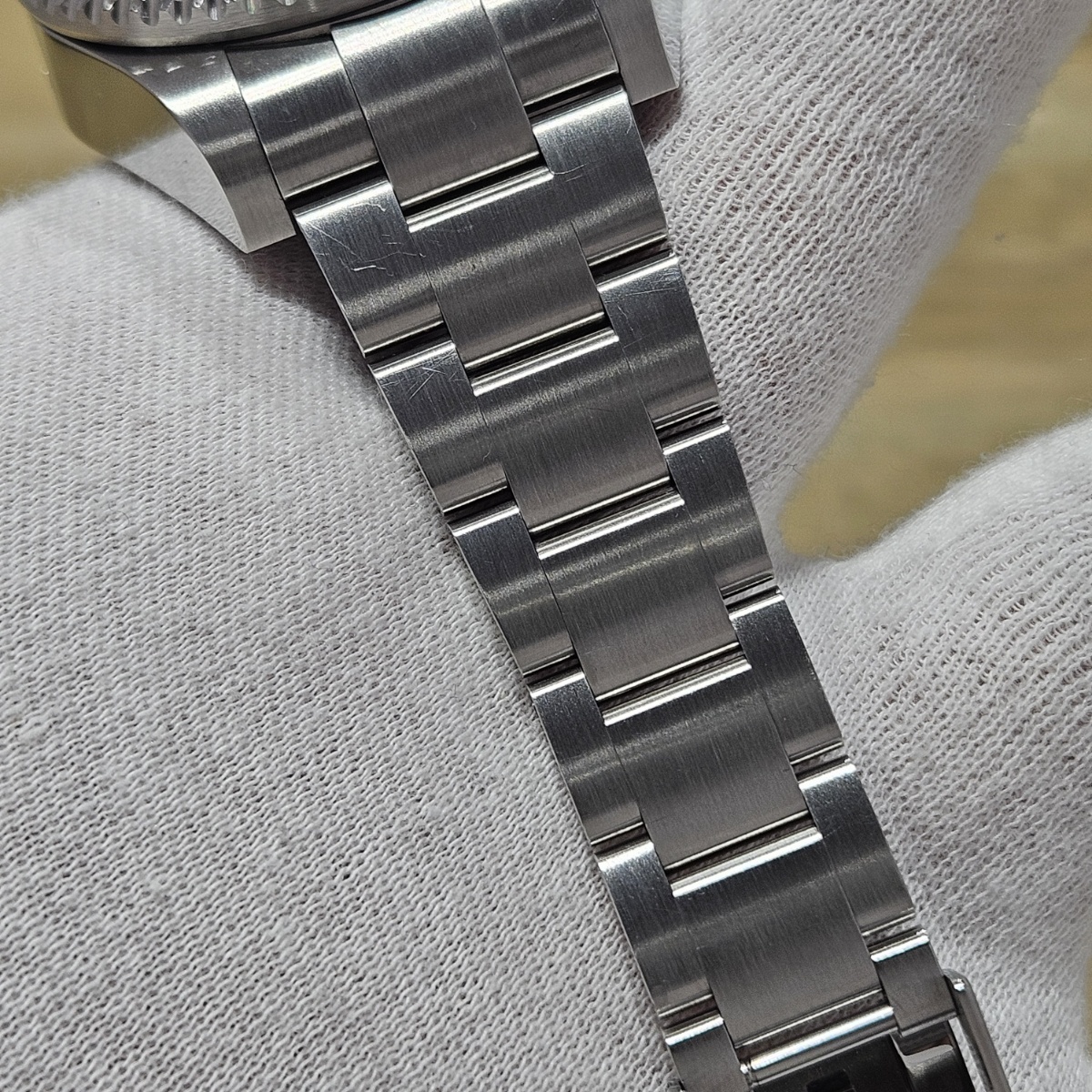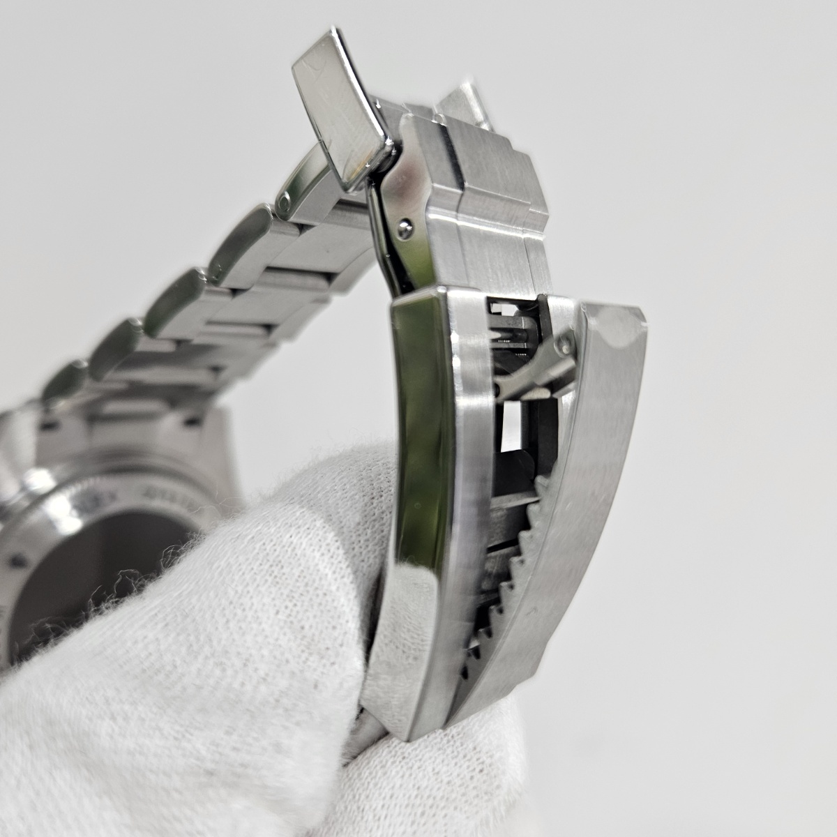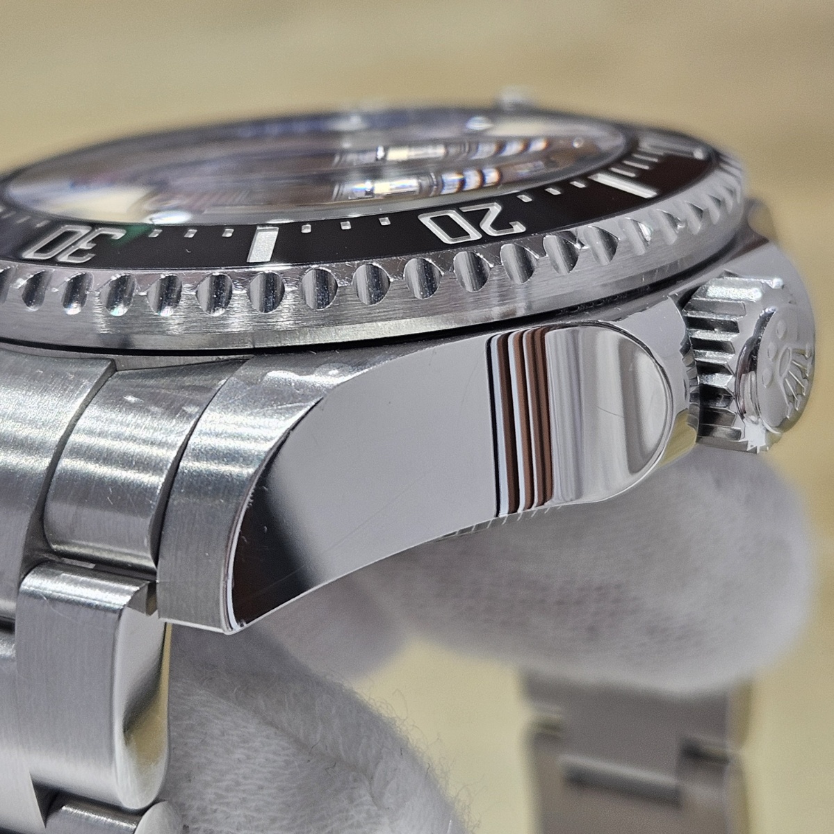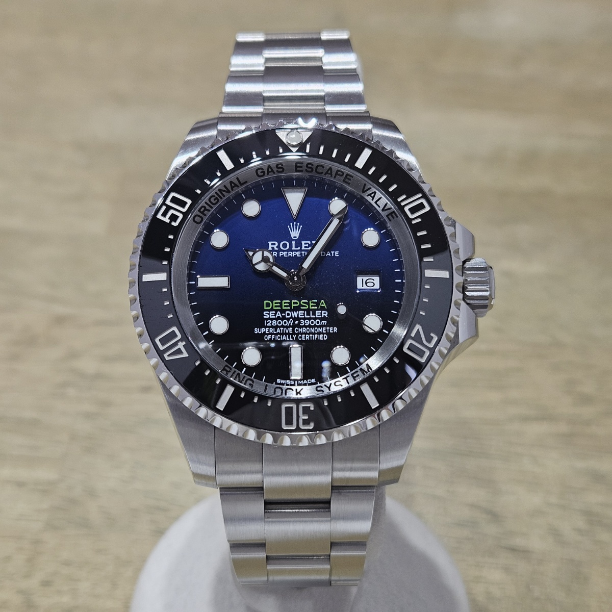 | コメント | 2018年2月国内正規品。製造最終期の初代ディープシーDブルーのノンポリッシュ品の入荷です。写真だとうまく写りませんが緑の文字のDEEPSEAの下まではっきりと青みが肉眼で確認できる後期型文字盤となります。大きな傷や打痕ができやすいディープシーですが今回の個体は全体の微細なスレとバックルのスレのみの素晴らしい状態となっております。現行品ではなくなってしまったフリップロックエクステンションシステムも健在です。年代も廃盤時の2018年の最終年代となっておりますので夏のダイバーズウォッチをお探しの方にはおすすめの1本でございます。 |