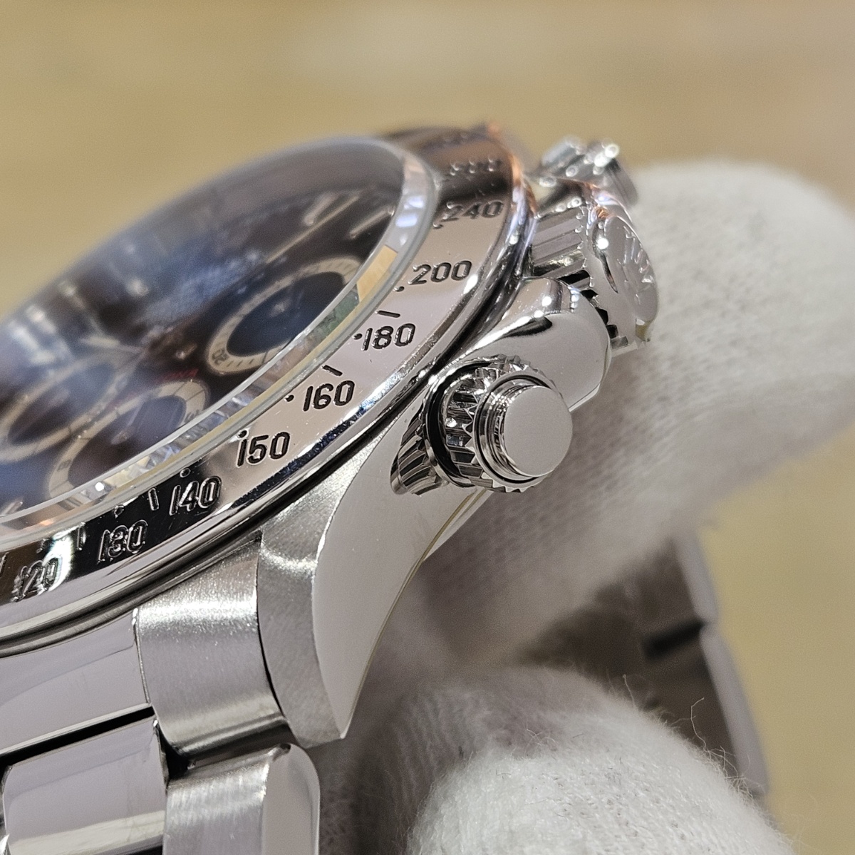 | コメント | 1996年7月国内正規品、W番1995年頃製造、クラスプコード「W]1995年頃。オールトリチウム、透かし無し風防、フルコマ。エルプリメロ搭載のデイトナ黒文字盤の入荷です。インダイアルがうっすら茶色みが出てきております。ベゼルも交換されていない狭HOUR表記ですしオリジナル性を保った個体となります。大きな傷も無く年代を考えるとかなり綺麗な個体となります。これからエイジングして夜光とベゼルを焼いていきたい方には非常におすすめな実用16520となりますので良条件の出物をお探しの方は早めにお問い合わせ下さい。 |