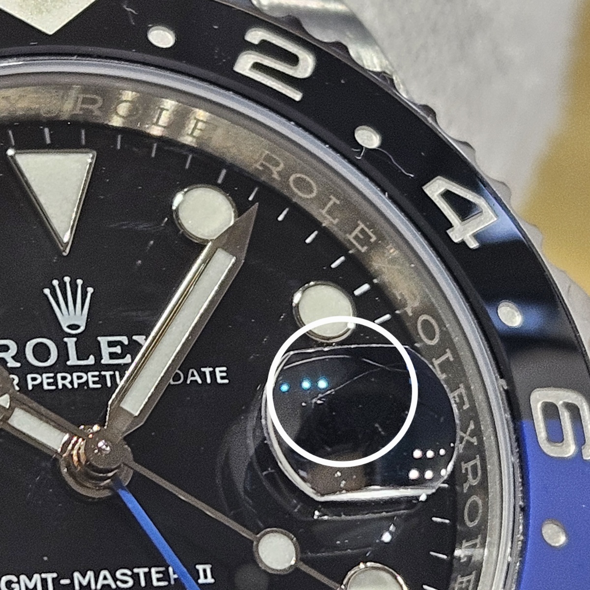 | コメント | 2017年4月。フルコマ完備品のGMTマスター2の青黒モデルの入荷です。全体的に綺麗ですが、風防のサイクロップレンズに極めて細い線傷がございます。それ以外は付属品も完備しておりますし精度も+2秒と安定しております。今では廃盤となってしまったモデルですが実用できる1本ををお探しの方は是非お問い合わせ下さい。 |