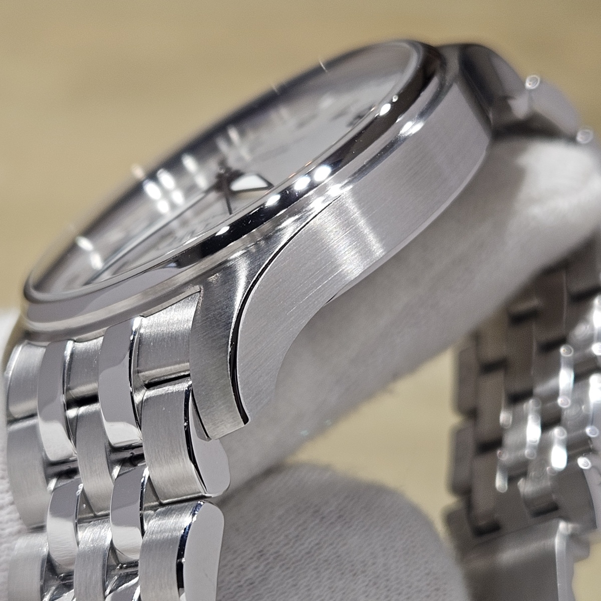 コメント | 2025年6月。国内正規品の1オーナーのノンポリッシュ極上品の入荷です。120時間パワーリザーブに加えブレスレットがワンタッチで外れる様になったことでより実用性を増した現行マーク20。シルバー文字盤のブレスレットモデルという事で万能な1本となっております。今回は高年式のノンポリッシュモデルとなりまして微細スレはございますが大きなダメージは無く高年式の極美品をお探しの方には自信をもっておすすめ出来る1本となっております。お探しの方は是非お問い合わせ下さい。 |